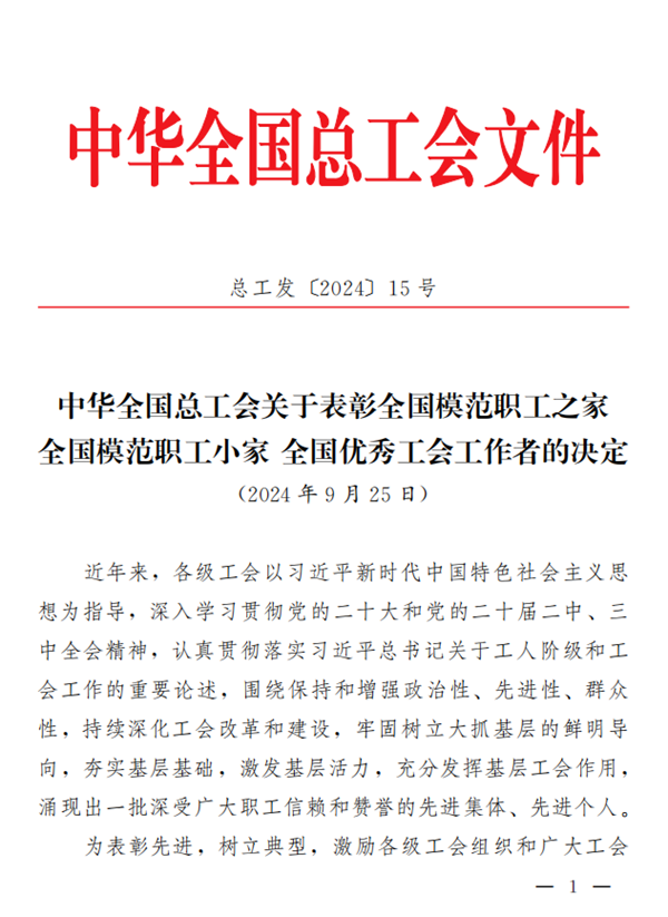 近日,中華全國總工會(huì)印發(fā)《中華全國總工會(huì)關(guān)于表彰全國模范職工之家 全國模范職工小家 全國優(yōu)秀工會(huì)工作者的決定》,表彰了一批先進(jìn)集體和先進(jìn)個(gè)人。來自健康基地園區(qū)的武藏精密汽車零部件(中山)有限公司工會(huì)委員會(huì)被授予全國模范職工之家稱號。