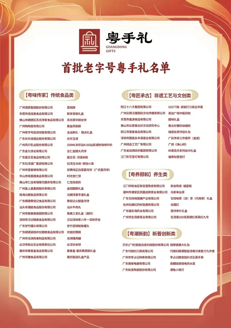 今年8月,為落實(shí)《廣東省促進(jìn)老字號(hào)創(chuàng)新發(fā)展行動(dòng)方案(2022-2025)》要求,促進(jìn)廣東老字號(hào)企業(yè)推出更多具有地域特色、文化內(nèi)涵、時(shí)代特點(diǎn)的“必購(gòu)必帶”產(chǎn)品,賦能老字號(hào)消費(fèi),推動(dòng)老字號(hào)品牌升級(jí),助力“粵品出粵”,提升“粵手禮”產(chǎn)品的市場(chǎng)競(jìng)爭(zhēng)力和品牌影響力,在廣東省商務(wù)廳、廣東省文化和旅游廳的指導(dǎo)下,廣東省老字號(hào)協(xié)會(huì)對(duì)“粵手禮”進(jìn)行產(chǎn)品征集、資格初審、專(zhuān)家評(píng)審、綜合考評(píng)等多個(gè)環(huán)節(jié)的層層篩選。涵蓋“粵味傳家”傳統(tǒng)食品類(lèi)、“粵匠承古”非遺工藝與文創(chuàng)類(lèi)、“粵養(yǎng)頤和”養(yǎng)生產(chǎn)品類(lèi)、“粵潮新韻”新晉創(chuàng)新品類(lèi)等,共計(jì)四大品類(lèi)45件產(chǎn)品入圍。