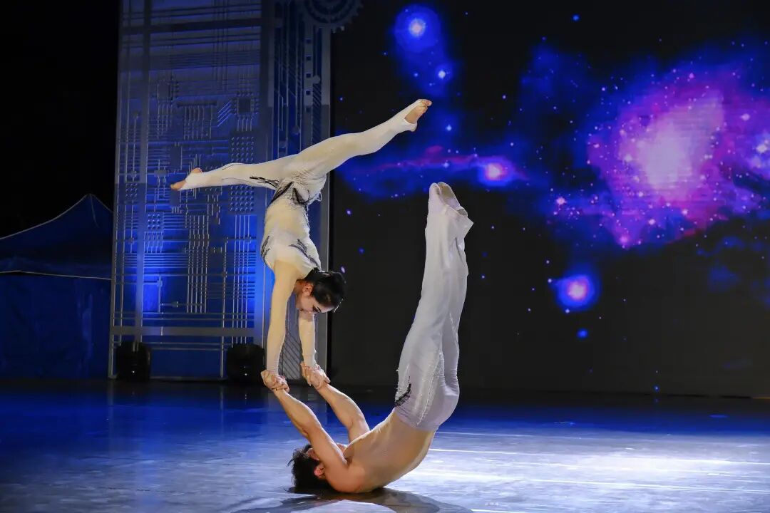 歌曲串燒環(huán)節(jié)更是高潮迭起,《篇章》《不要慌太陽下山有月光》《異客》《天地龍鱗》等流行與經(jīng)典曲目輪番上演;相聲《灣區(qū)夢·工匠心》以幽默詼諧的方式道出了灣區(qū)建設者的匠心追求;雜技《男女力量》則用高難度的技巧展示了力與美的完美結合,令人嘆為觀止;情景敘述《百年工會·薪火長明》通過深情的講述與表演,回顧了百年工運的光輝歷程與不變初心;獨唱《勞動者最美》用歌聲禮贊勞動,將最美頌歌獻給在場的每一位職工。