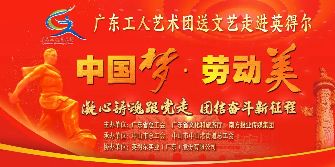 10月17日晚,“中國夢·勞動美——凝心鑄魂跟黨走 團結奮斗新征程”廣東工人藝術團送文藝活動在英得爾實業(yè)(廣東)股份有限公司舉行。本次活動由廣東省總工會、廣東省文化和旅游廳、南方報業(yè)傳媒集團主辦,中山市總工會、中山市中山港街道總工會承辦。領導嘉賓、各級勞模代表、企業(yè)職工等500多人現(xiàn)場觀看了這場精彩的文藝盛宴。