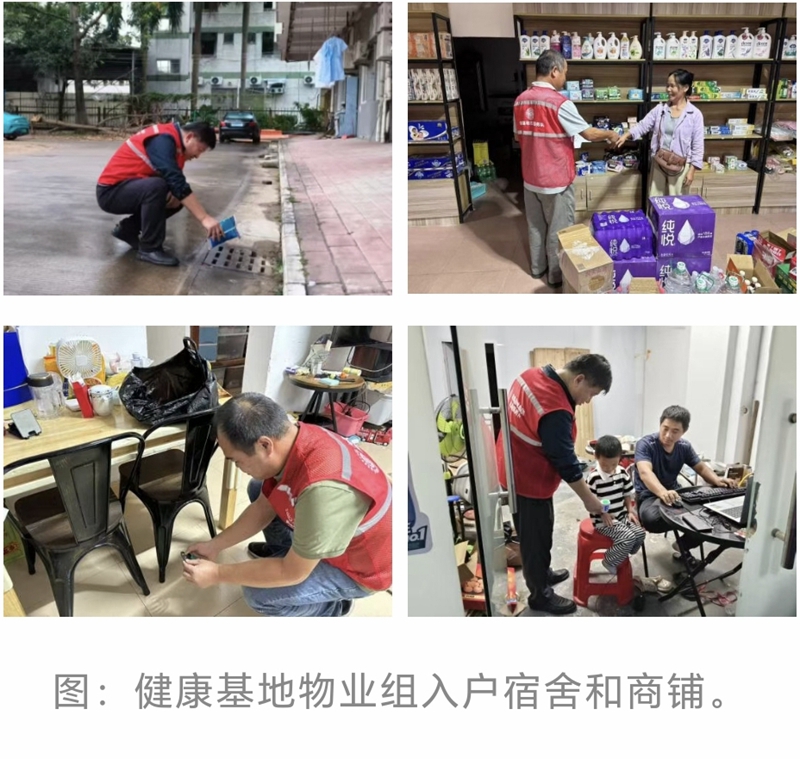 健康基地入戶組深入自有物業(yè)、園區(qū)各載體與企業(yè),按照《健康基地園區(qū)“兩熱”防控工作對(duì)照清單》排查,壓實(shí)企業(yè)在人員健康監(jiān)測(cè)、車輛管理與日常消殺等方面的主體責(zé)任。在全面入戶過程中,組員走進(jìn)企業(yè)飯?zhí)、員工宿舍,同步推進(jìn)健康關(guān)懷與環(huán)境整治:一方面為群眾現(xiàn)場(chǎng)噴灑驅(qū)蚊液、點(diǎn)燃蚊香,細(xì)致清理各類積水容器,從源頭阻斷蚊媒滋生;另一方面耐心詢問住戶身體狀況、測(cè)量體溫,動(dòng)態(tài)掌握健康信息,并同步巡查空置房,確保不留衛(wèi)生死角,全面筑牢園區(qū)健康安全防線。