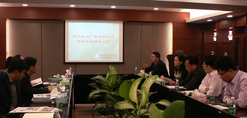 12月11日, 廣東省“創(chuàng)新藥物篩選與評(píng)價(jià)重大科技專項(xiàng)”和“節(jié)能減排與可再生能源重大科技專項(xiàng)”實(shí)施組一行7人在省重大科技專項(xiàng)辦公室處長(zhǎng)梁宇寧的帶領(lǐng)下,實(shí)地調(diào)研健康基地,梁宇寧處長(zhǎng)一行詳細(xì)了解了健康基地的創(chuàng)新藥物研究開(kāi)發(fā)、節(jié)能減排及可再生能源項(xiàng)目情況,并與從事創(chuàng)新藥物研究開(kāi)發(fā)和節(jié)能減排及可再生能源的相關(guān)企業(yè)進(jìn)行了座談?wù){(diào)研;鹁骈_(kāi)發(fā)區(qū)科委主任助理戴小兵、健康基地總經(jīng)理劉嶸、副總經(jīng)理林霞等熱情接待了調(diào)研組一行。